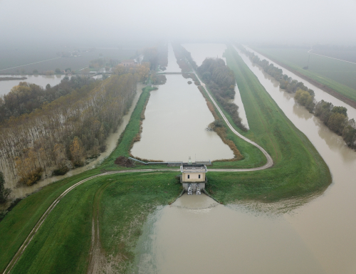 Ad oggi nelle casse di espansione del sistema idraulico del Consorzio sono parcheggiati più di 11 milioni di metri cubi d’acqua, in attesa che i livelli del Reno si abbassino e consentano di sollevare meccanicamente nel fiume queste masse idriche.