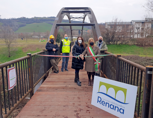 La sindaca di Pianoro Franca Filippini e la presidente del Consorzio Valentina Borghi hanno simbolicamente tagliato il nastro inaugurale della nuova struttura di attraversamento del Rio delle Vacche, in prossimità dei laghetti del Rio Gualando, rimasta inagibile e chiusa per molto tempo, a causa dell'usura dell'impalcato che la rendeva pericolosa.