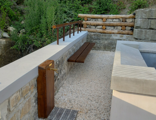 “La vecchia struttura – spiega per la Renana il progettista dell’opera, Andrea Gherardini – è stata recuperata e attrezzata con una fontana e una seduta, creando un luogo comodo e utile per la sosta di chi passa da questa strada. Nella scelta dei materiali, si è privilegiata la pietra serena e il legno di castagno, elementi caratterizzanti del paesaggio appenninico e degli interventi della Bonifica Renana in montagna”.